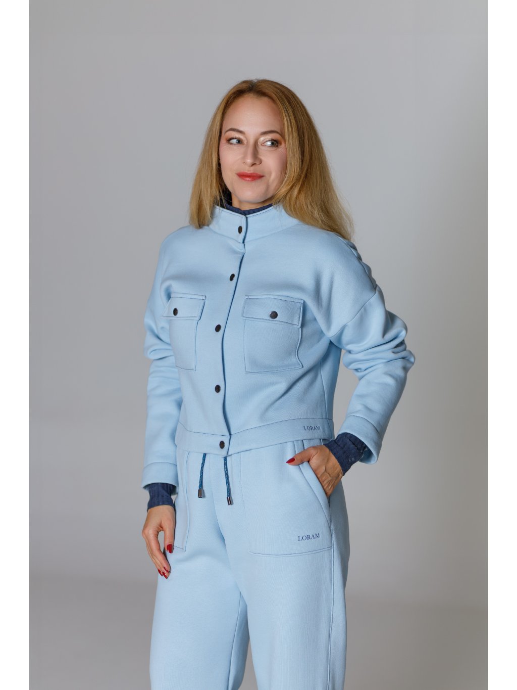 Tepláková souprava je z 98 % bavlna a 2 % elastan. Materiál máme od českého výrobce.